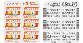 - カプセルに成分名(フィンゴリモド)、含量を印字